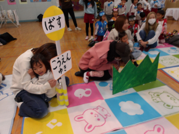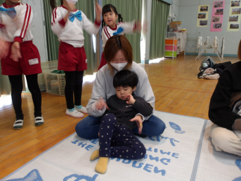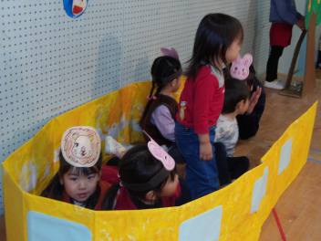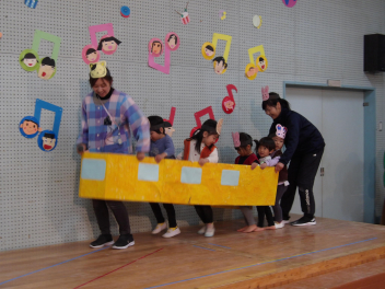 そして、最後に、年少組の表現遊び「たんぽぽばす」を見てもらいました。