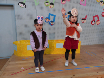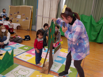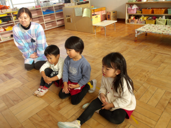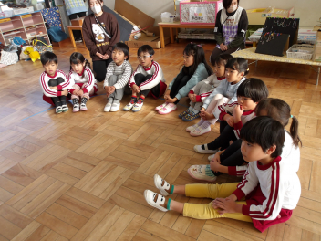 今日のひよこ学級は、始めに、先日の生活発表会の演目を各クラス一つずつ見てもらいました。