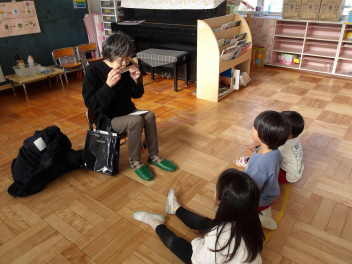 読み聞かせの前に、ハーモニカでクリスマスソングを吹いてくださいました。