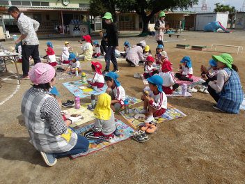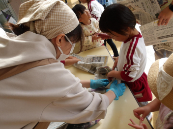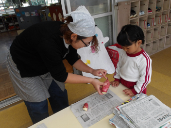 お手伝いに来てくれたママさんたちに教えてもらいながら、頑張ってやりました。