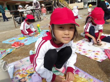 今日のサツマイモ掘り、こどもたちもとても楽しみにしていました。