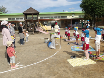 と威勢のよい声が聞こえてきて、幼稚園のこどもたちは、その声に引き寄せられるように、7つのゲームコーナーへ散らばりました。