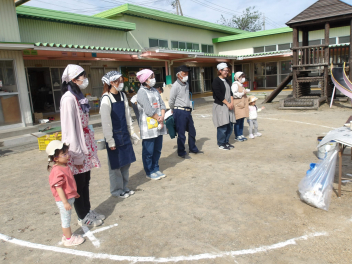 中瀬のみんなに「さようなら」の挨拶をして、幼稚園に帰りました。