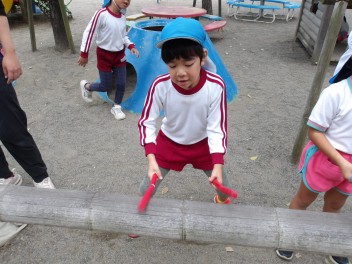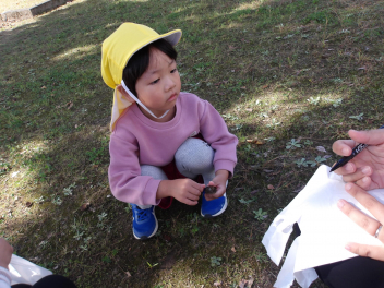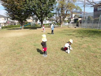 公園に着いたら、早速、ブランコに乗ったり、ドングリを拾ったり、鉄棒をしたり…それぞれ遊びたいことをして過ごしました。