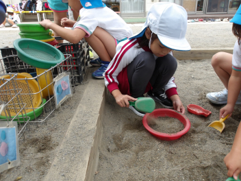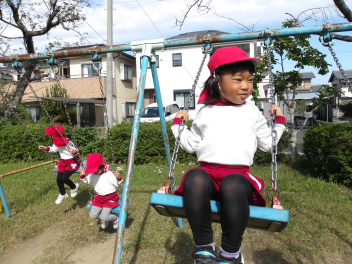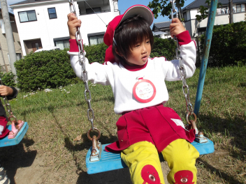 自由遊びでは、いろいろな遊具で遊んだり、園舎の裏にある広い畑で虫捕りをしたり、サッカーをしたり、砂遊びをしたり…