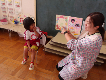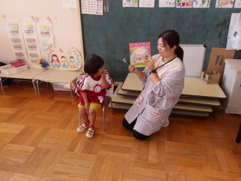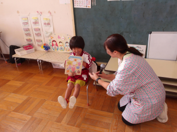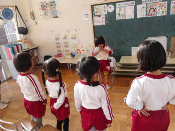 お誕生日のお友達は、とても嬉しそうに、にこにこ顔で聞いていました。