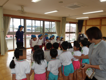 園長先生からは、「おはしも」の約束をしっかりと守って、先生方の指示に従って素早く避難できたことを褒めてもらいました。