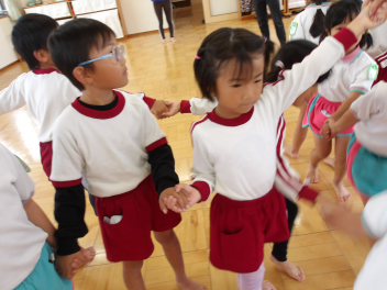 その後、みんなで、「なべなべそこぬけ」をやりました。