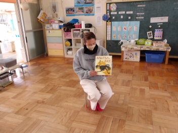 あじさい組では、勇敢なダチョウのお話を読んでもらいました。