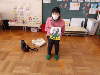 今日の読み聞かせは、恐竜のお話でした。