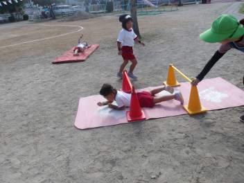 そばにいた先生にお手伝いしてもらって、「逆上がりができたよ~!」と報告しに来てくれました。