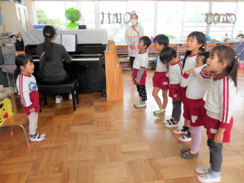 とても嬉しそうに、にこにこ顔で、お友達と一緒に歌っていました。