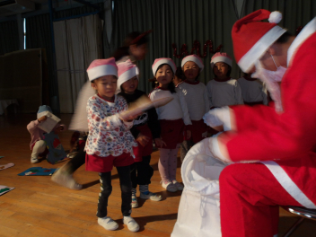 みんな、サンタさんを目の前で見ることができて、プレゼントももらえて、とても嬉しそうでした。