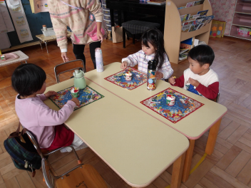 3学期は、年中組さんにとっては、年長組になる準備をする大切な学期です。これからも、いろいろな場面で、こんな年中組7人の姿を見ることになると思います。