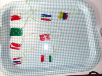 何を話しているかわからず、こどもたちが困っていたら、年長組の先生が、英語が日本語に聞こえる魔法をかけてくれました!