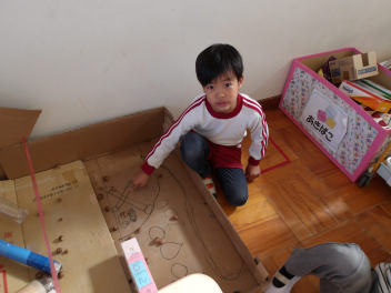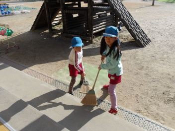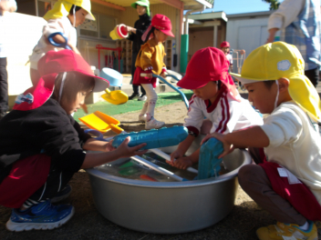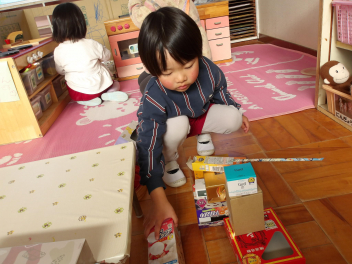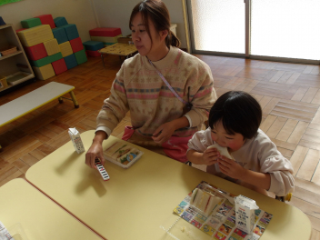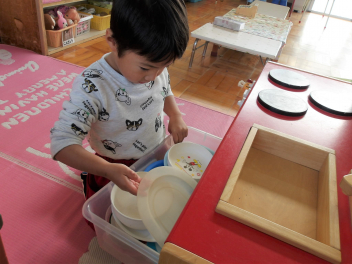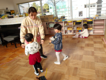と声を掛けても、遊びに夢中になりすぎて、なかなか後片付けに取り掛かれないこともあった3人でしたが、今日は、先生の声掛けにすぐに反応して、素早く後片付けに取り掛かることができていました。