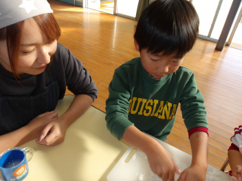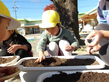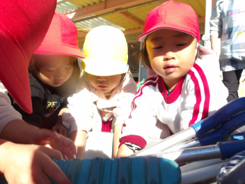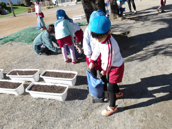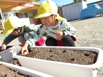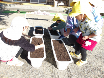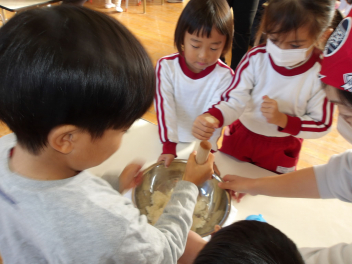 年中さんたちは、14日の干し芋づくりに向けて、着々と準備を始めています。
