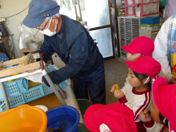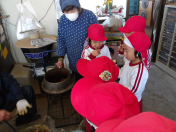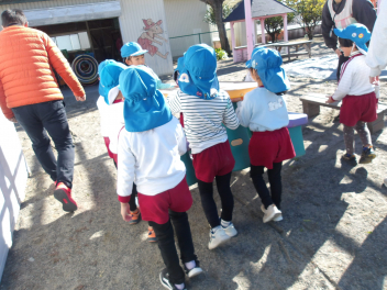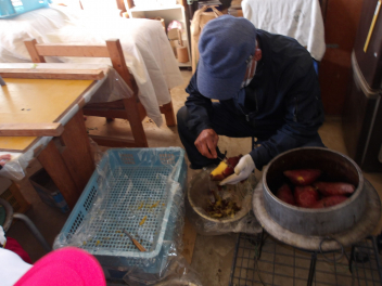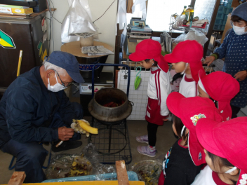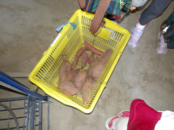 今日は、干し芋づくりを教えてくださる、地域の方のところへ、みんなで収穫したサツマイモを持って行きました。