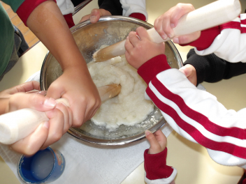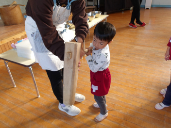 明日の「干し芋づくり」は、年中組のこどもたちが、初めて中心になって進めていく行事です。