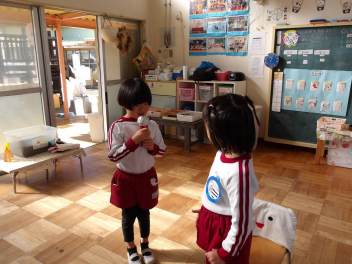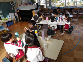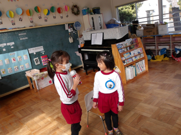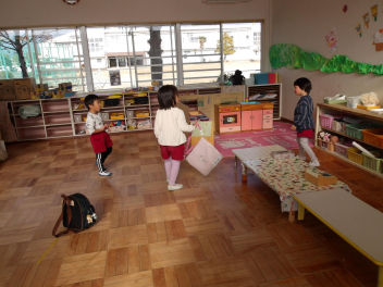 こどもたちは楽しい3連休を過ごして、幼稚園へ元気いっぱいに登園してきました。