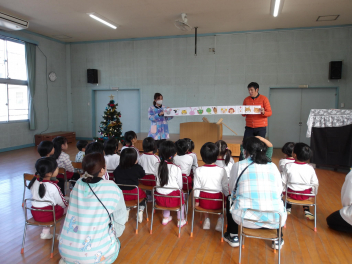 パネルシアターをしてくださり、クリスマスにちなんだお話を楽しみました。