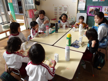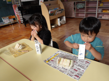 どの教室でも、みんな美味しそうにサンドイッチをほおばっていました。