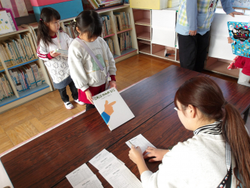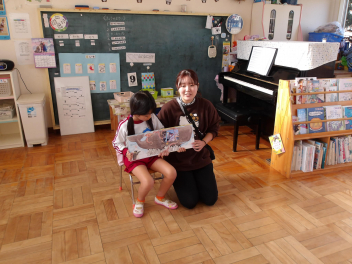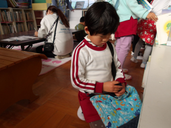 お掃除が終わた後は、絵本を借りに絵本の部屋へ行きました。
