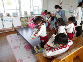 パネルシアターをしてくださったサンタママさんたちに、お礼を言ってお別れをしました。