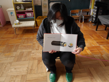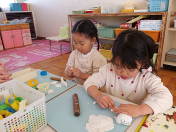 今日は、午前中の前半は、それぞれのクラスの保育室で過ごしました。