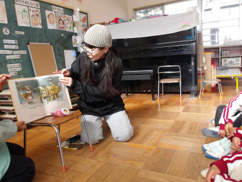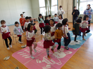 「さんぽ」は、みんな、そのばで足踏みをしながら、さんぽをしている気分で聴きました。