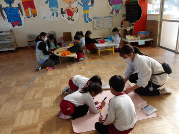 年長組さんは、このごろ、何をするにもみんなと協力し合い、集中して取り組むことができていて、すごく成長しました。
