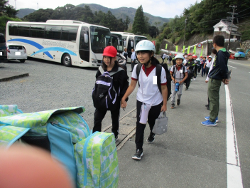 浜松市かわな野外活動センターで行った林間学校から5年生が帰校しました。