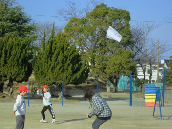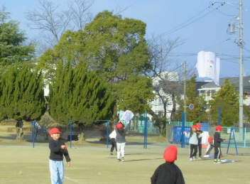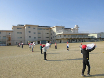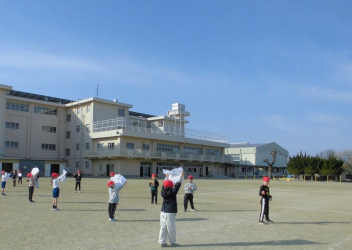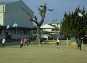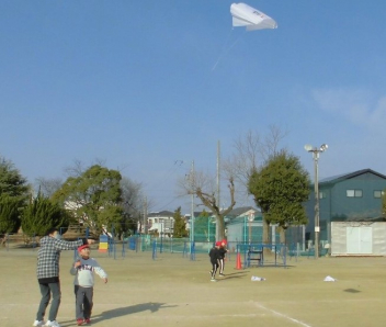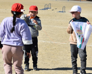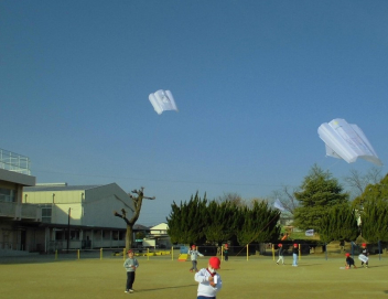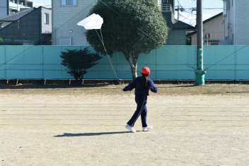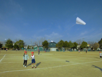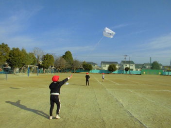 • 生活科「昔の遊びを楽しもう」の学習のひとつとして、凧揚げをしました。