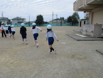 避難経路や避難方法の確認をしながら、どの子も真剣に訓練に取り組んでいました。