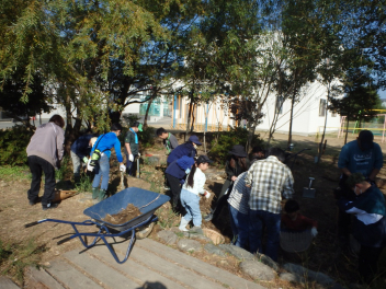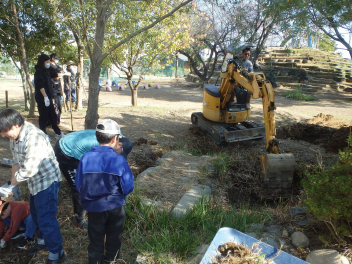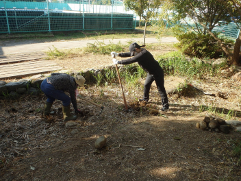 • 本校の西運動場にあるビオトープの改修に、多くのボランティアの皆様が参加してくださいました。