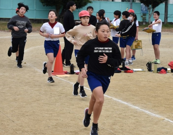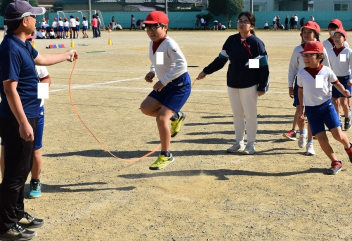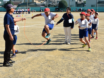 体育科の学習では、長縄跳びに取り組んでいます。