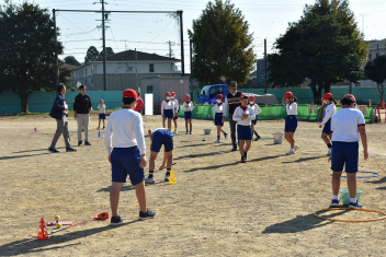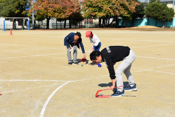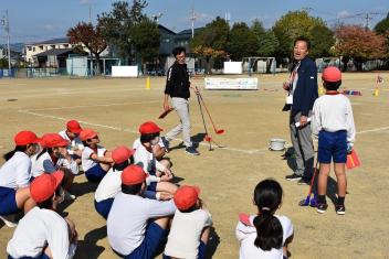 • 高学年の児童は、日本ゴルフツアー機構の皆様からスナッグゴルフについて学び、実際にプレーを楽しみました。