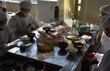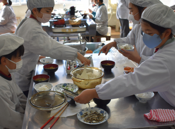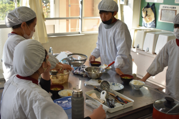 今日は、麁玉中学校のリクエスト給食で、テーマは、「中学生大好きメニュー」です。寒い時期でもほっとする幸せな給食時間になるようにと、献立を考えてくれました。デザートとしてリクエストされた焼きプリンタルトは、明日の給食に登場します。