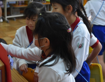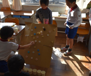 • 「秋のおもちゃまつり」に向けて、友達と話し合いながら、準備を進める子供たちの意欲的な姿。