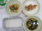 ごまには、エネルギーのもとになる脂質や炭水化物、体をつくるもとになるたんぱく質や無機質が豊富に含まれています。今日は、しょうゆと砂糖にごまを加えて作った「たれ」でキャベツとにんじん、きゅうりを和えた、「ごまあえ」にしました。