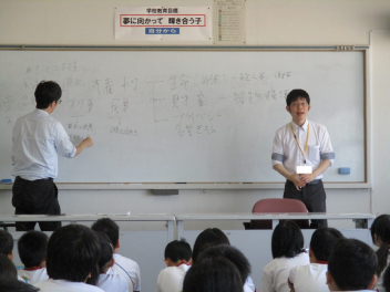 • 弁護士の吉田様と鈴木様のお二人をお招きして、法教育出前講座を行いました。