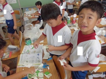 • 生活科の時間におもちゃ作りをしました。