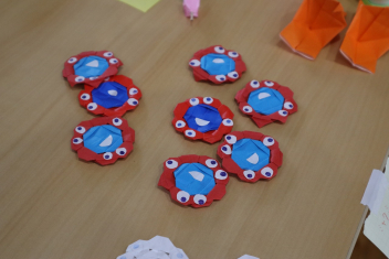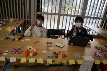 7か国のパビリオンがあり、クイズに正解するとオリジナルコインがもらえます。売店では、そのコインを使って景品を買うことができます。ダンボールや折り紙を使ってわくわくするような見た目にしたり、景品やコインを協力してつくったりする姿がとてもすてきでした。