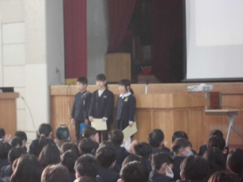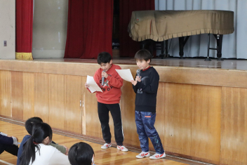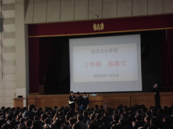 1月6日(火)に第3学期の始業式が行われました。代表児童の3名から3学期の目標の発表がありました。とてもいい発表でした。校長先生の話では、今年の干支「午」にちなんで、目標に向かって力強く飛躍する年になるようしていく話や3学期に意識してほしいことの話がありました。