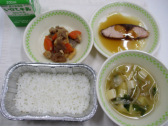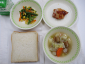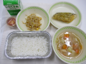 今日は北浜小学校のリクエスト給食で、タイトルは「浜松の旬を楽しもう!しあわせ給食」です。人気のあるメニューと、浜松でとれた食材を組み合わせてくれました。ABCスープは、彩りも考えてくれています。
