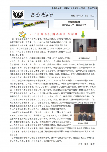 詳しく御覧になりたい場合は、「学校便り[PDF:〇KB]」をクリックしてください。
