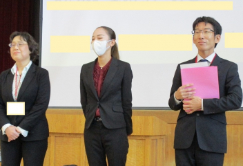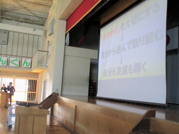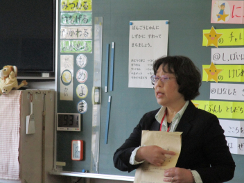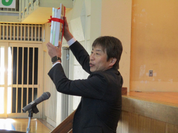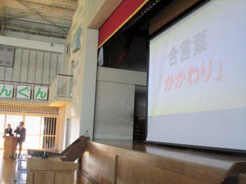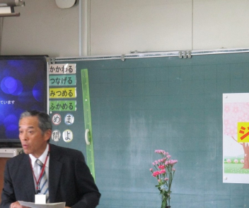 学校教育目標「夢に向かって 輝き合う子」に向かって、「かかわり」を大切にしながら、どの子も自分から進んで取り組み、輝いてほしいという話がありました。