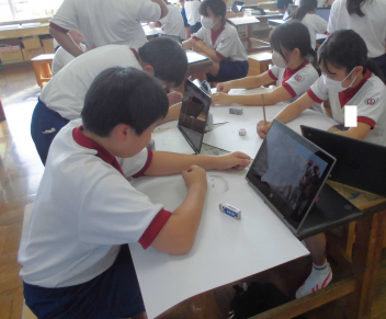 図画工作科では、林間学校の画像を見て、楽しかったことを思い出しながら、絵を描いています。