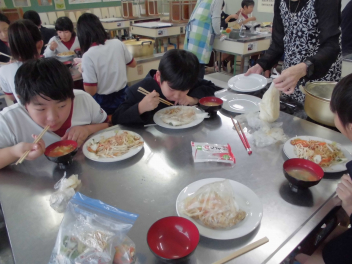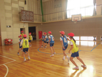 • 体育科では、バスケットボールの学習をしています。パスをもらいやすい位置に動きながら、少しずつ得点が取れるようになってきました。
