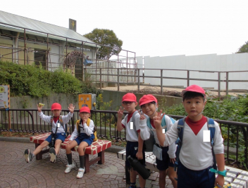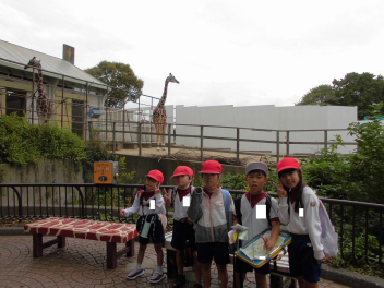 浜松市動物園では、たてわりグループの1年生と一緒に園内を回りました。